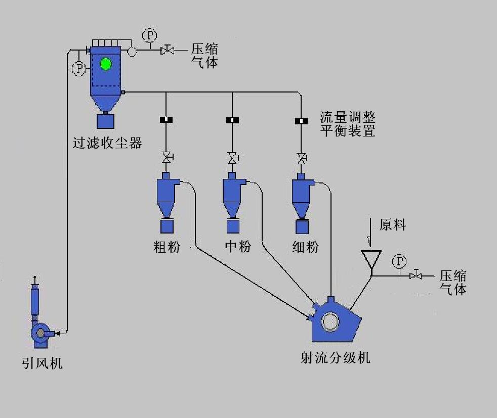 具有非常精確和穩定的分級效果,適用于對產品質量和穩定性要求極高的精密分級,將原料一次性分為粗、中、細粉 三部分。
